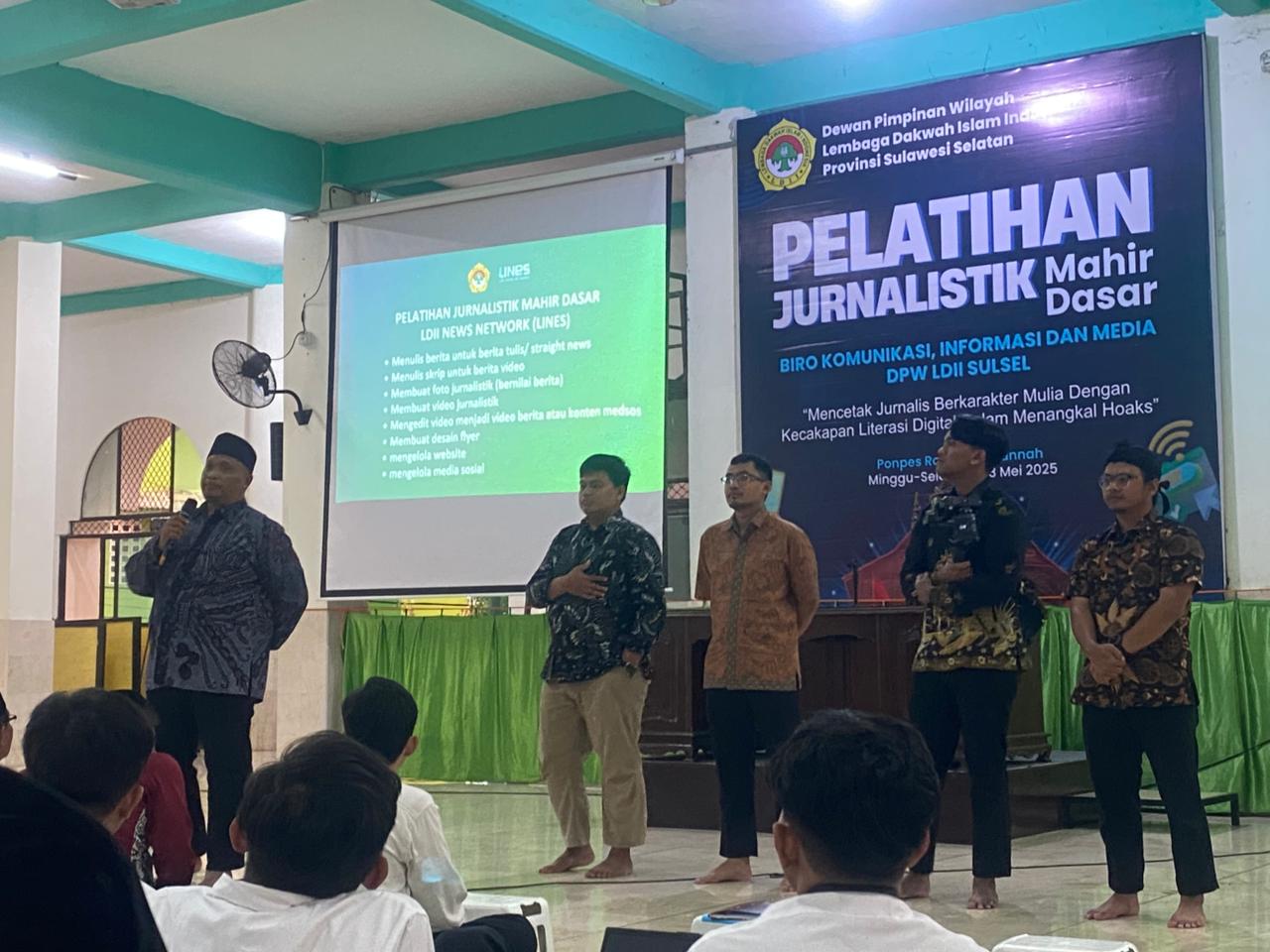 Makassar (11/05) – DPW LDII Sulawesi Selatan bekerja sama dengan KIM DPP LDII menggelar pelatihan jurnalistik mahir dasar di Masjid Roudhotul Jannah, Kompleks Dr Tadjuddin Chalid, Jalan Berua Raya, Kota Makassar, Minggu (11/5/2025).
